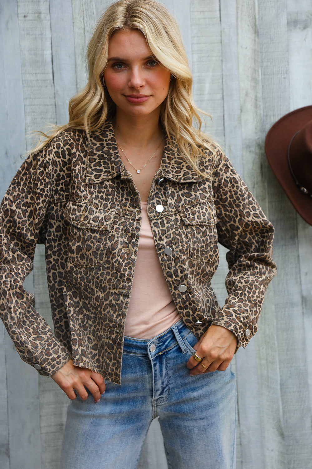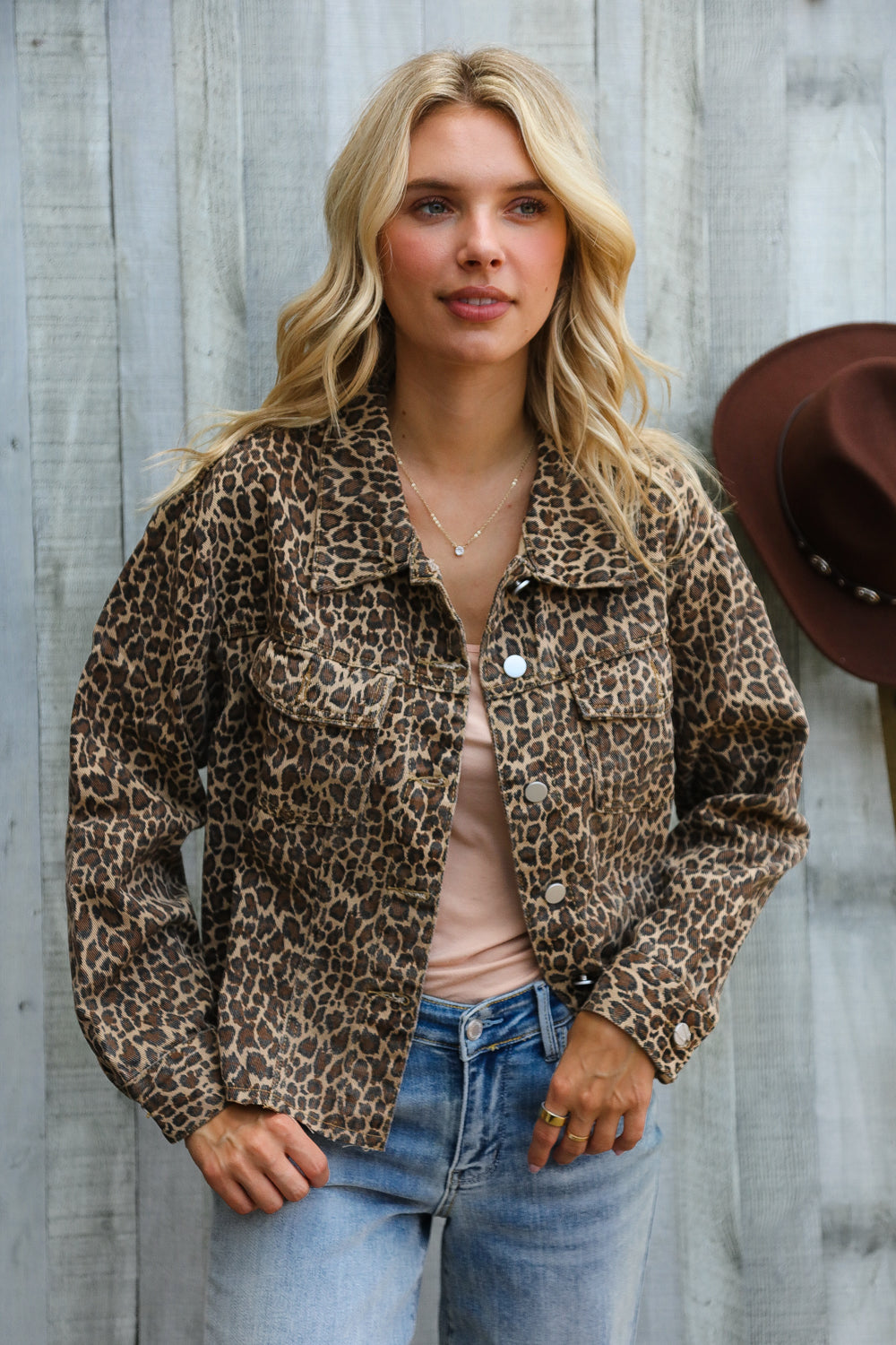This leopard jacket with a frayed edge detail is one of those pieces that just makes you feel a little extra sassy. It’s got a soft, washed, lightweight denim feel with a fit that hits right at the waist. It looks cute with high rise jeans or even over a dress. We love it styled with a cute headband. Toss it on for a night out or even just running to the coffee shop, it is surprisingly versatile.